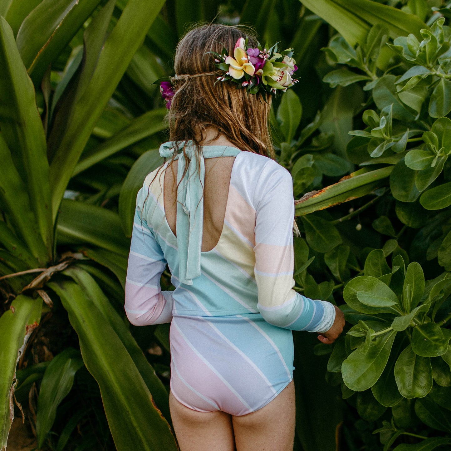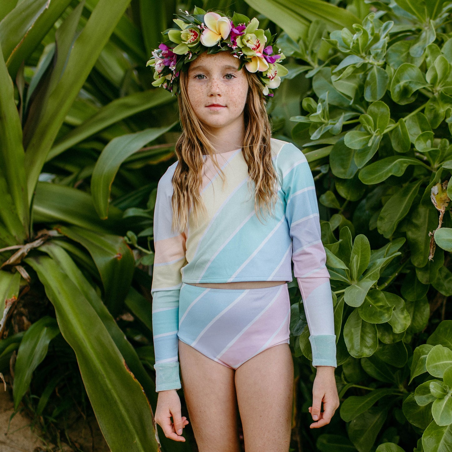 Regular price $40.99Featuring retro-inspired long sleeves, flattering high waisted bottoms, excellent sun protection, and the ultimate comfort, this girls' two-piece long sleeve swimsuit will keep them protected and surf stylish.
