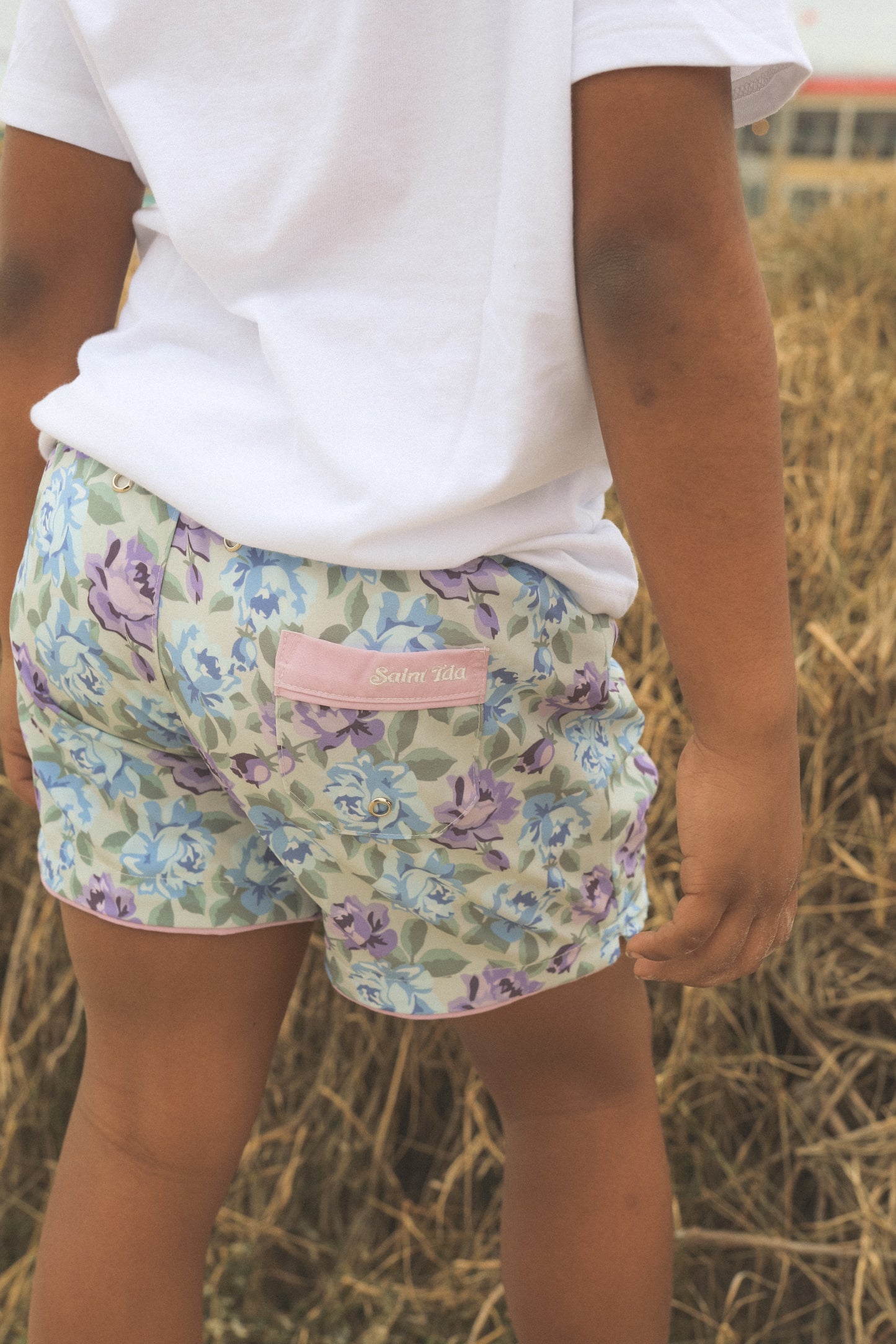 Embroidered back pocket with drainage grommet
